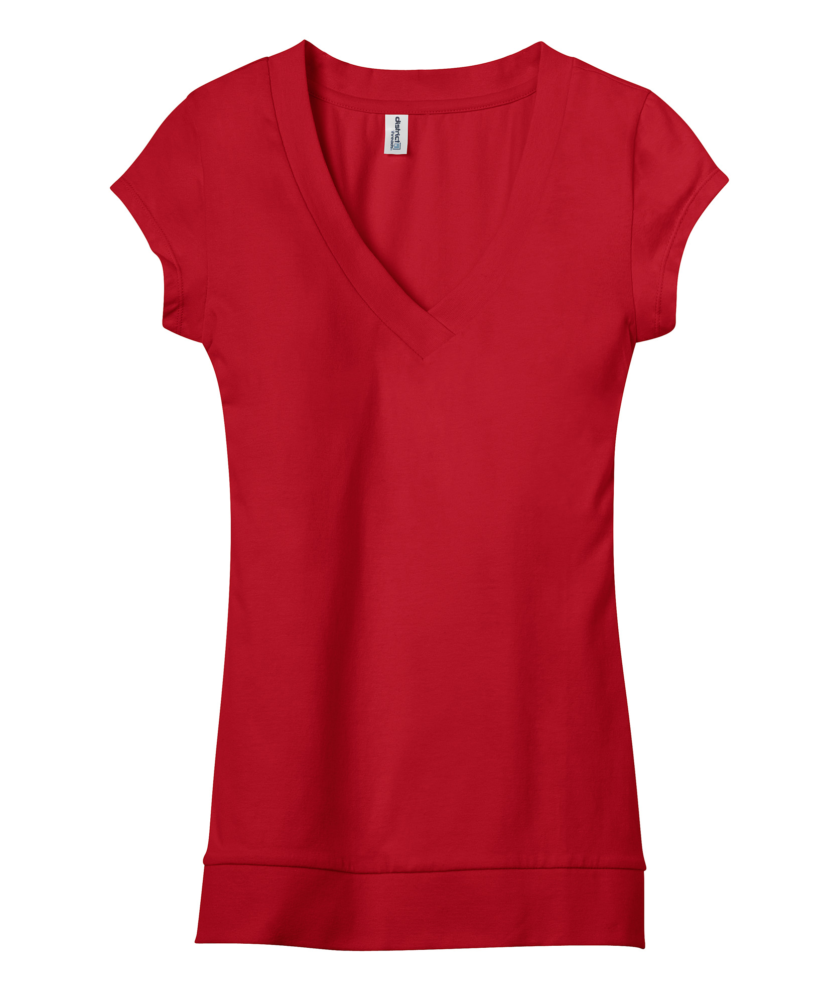 With the right amount of spandex for exceptional stretch, this feminine v-neck has a fun look thanks to its banded hem. 4.1-ounce, 95/5 cotton/spandex Wide rib knit at crossover v-neck and hem Set-in cap sleeves with double-needle cuffs