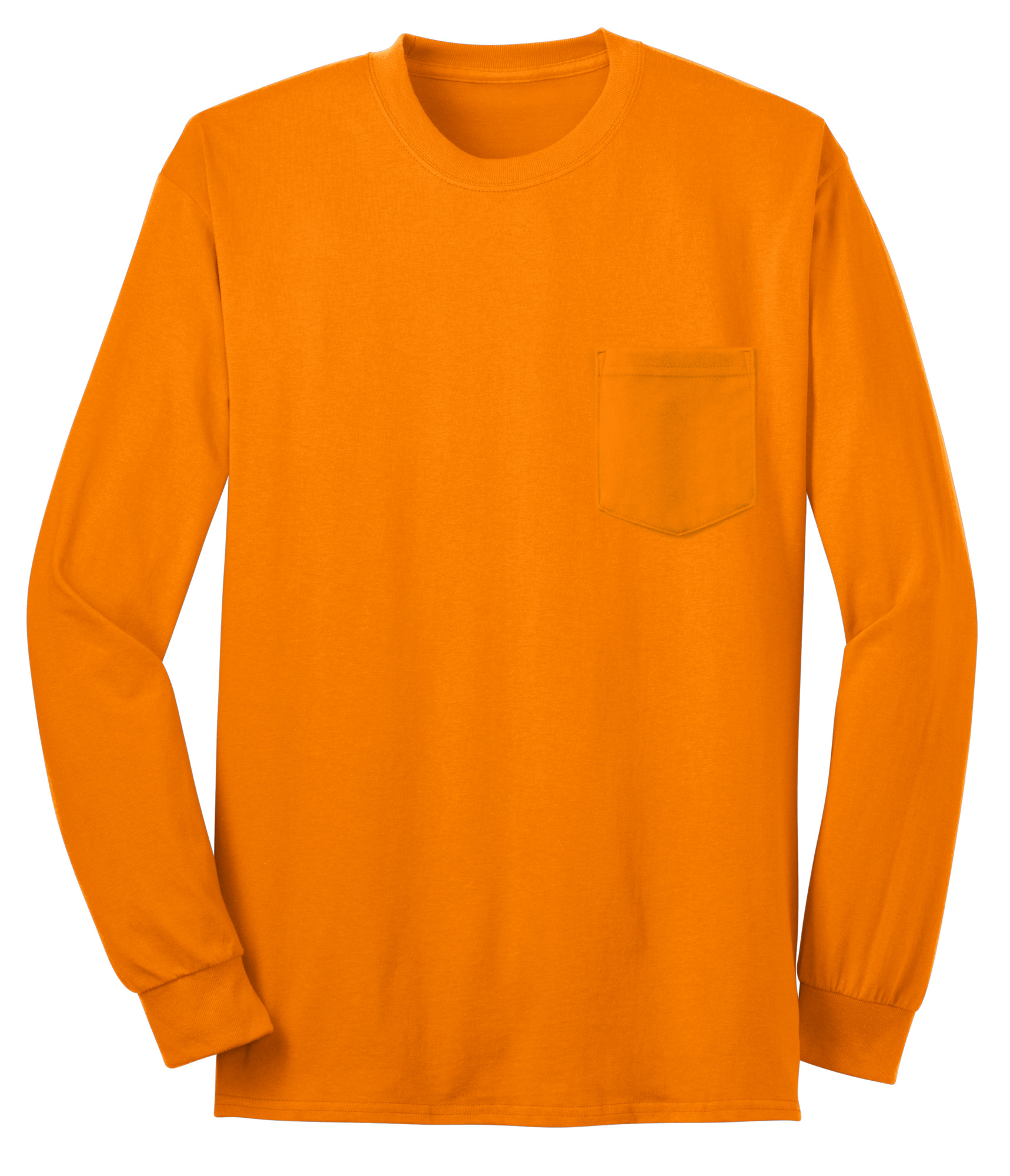 6-ounce, 100% cotton (preshrunk) Double-needle neck and hem Taped neck and shoulders Double-needle, left chest 5-point pocket Rib knit cuffs Safety Green, Safety Orange 50/50 cotton/poly. Sport Grey 90/10 cotton/poly.